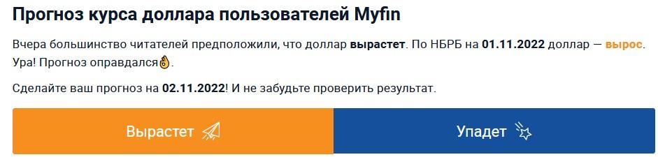 Благодаря новому сервису «Мой прогноз» на Myfin.by все пользователи теперь могут проголосовать за послезавтрашний курс доллара США и испробовать себя в качестве эксперта по валютам.