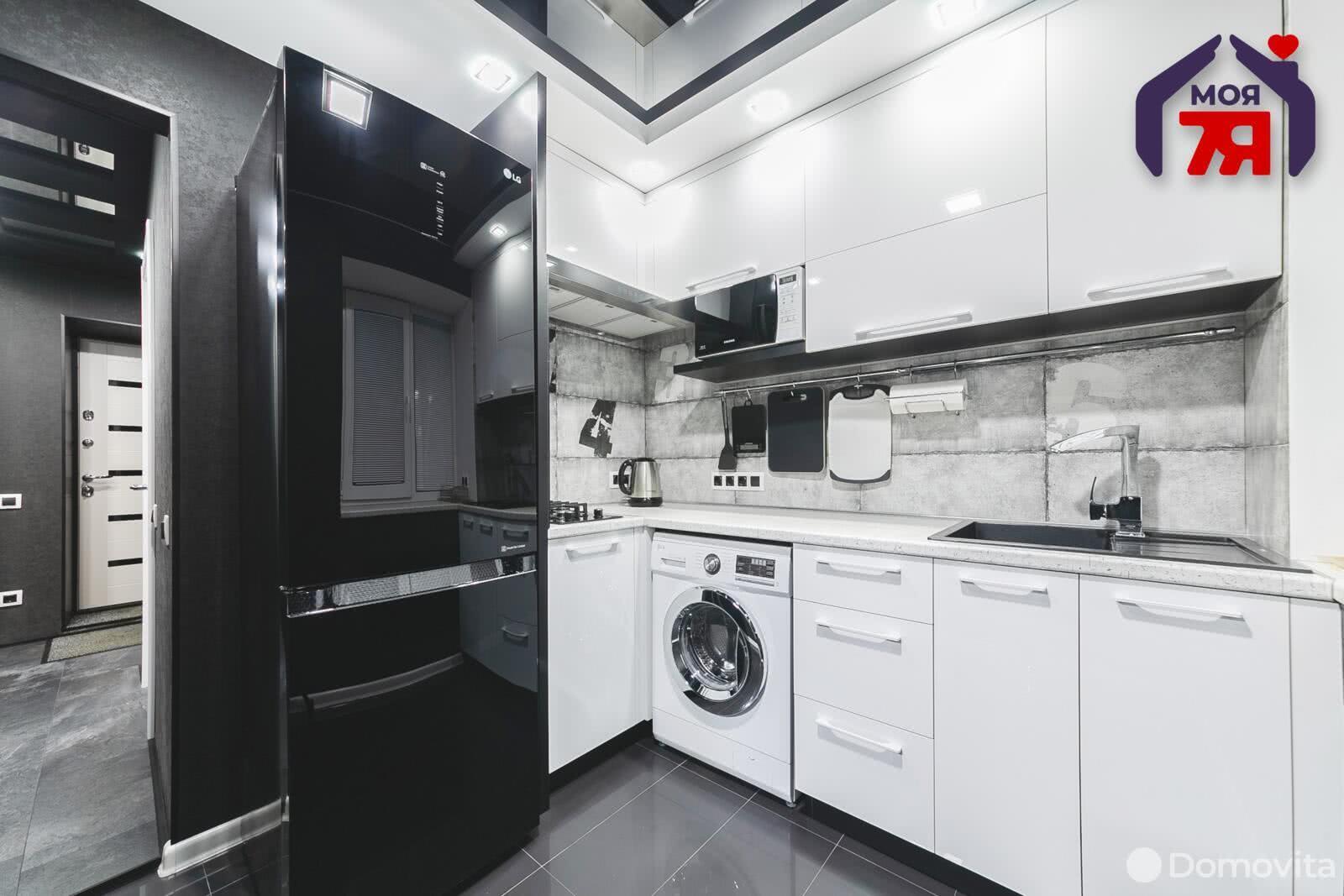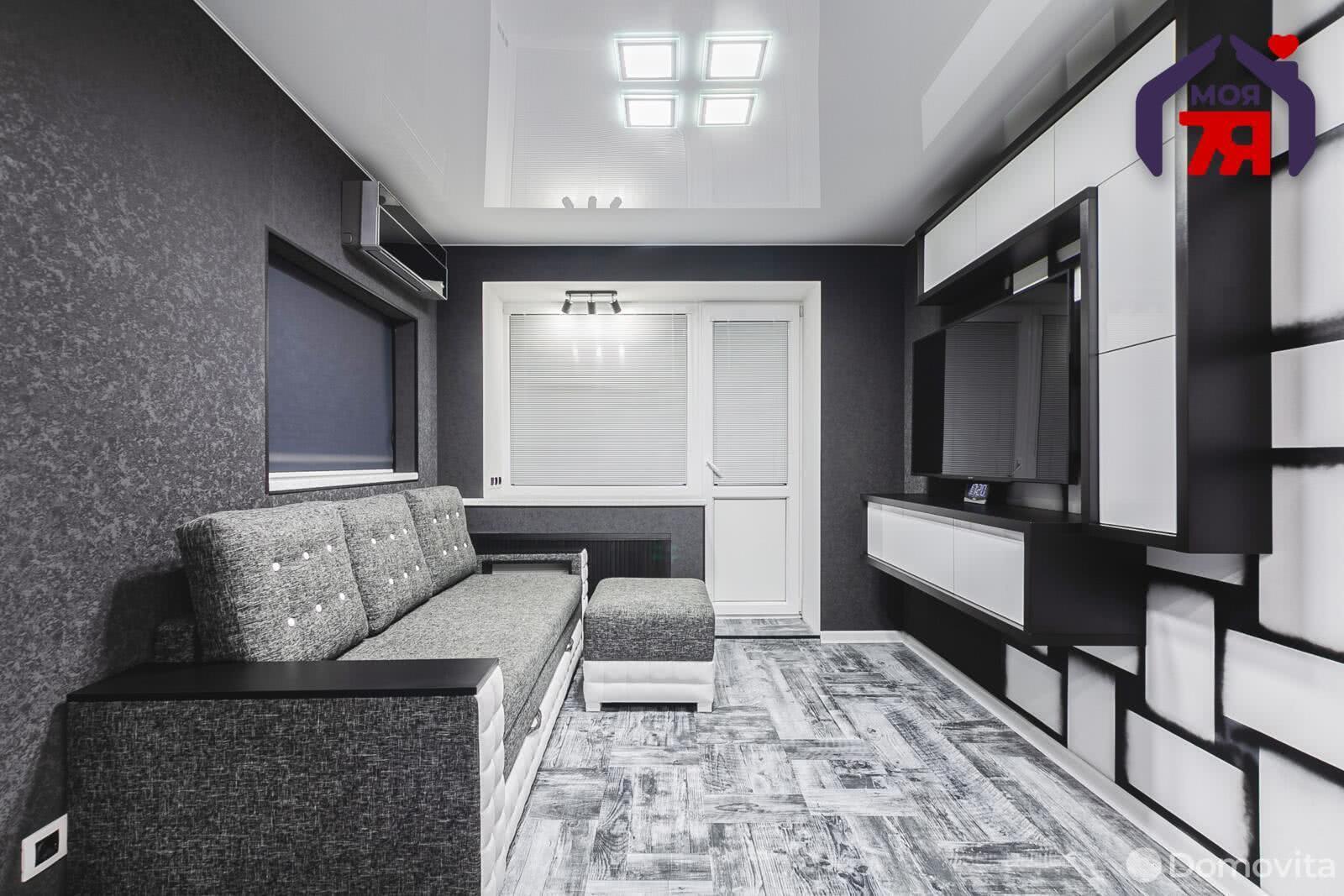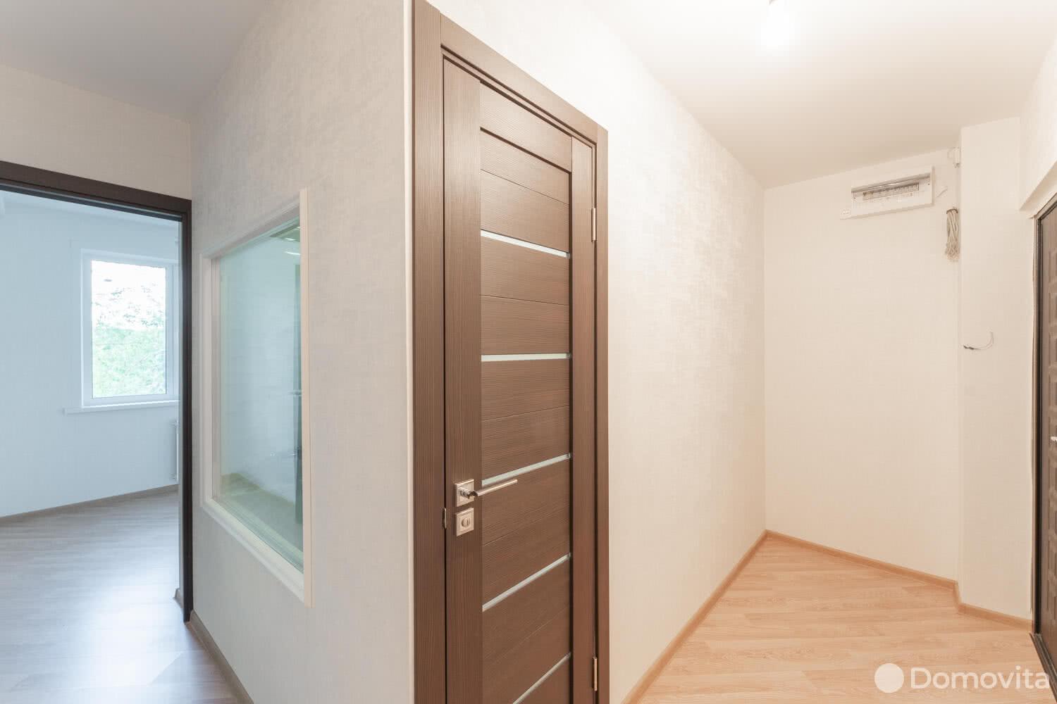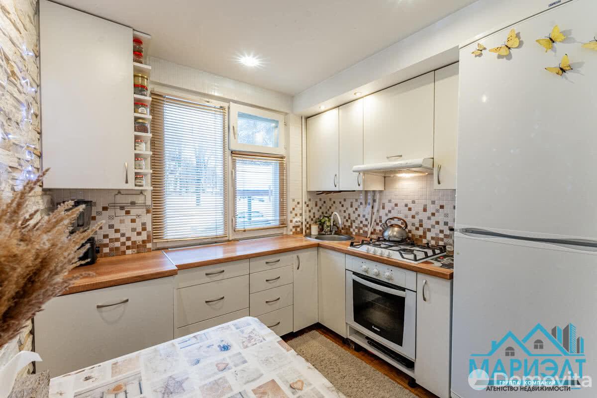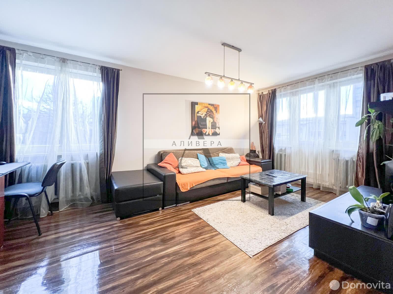 Небольшая квартира площадью 31 кв.м в панельном доме 1963 года постройки. Находится возле трамвайных путей на стыке улицы Якуба Коласа и Логойского тракта, до метро 15 минут на общественном транспорте. Дом после капремонта в 2010 году. В гостиной два окна, есть балкон. Ремонт выглядит прилично, в комнате светлая отделка, в санузле лежит плитка.