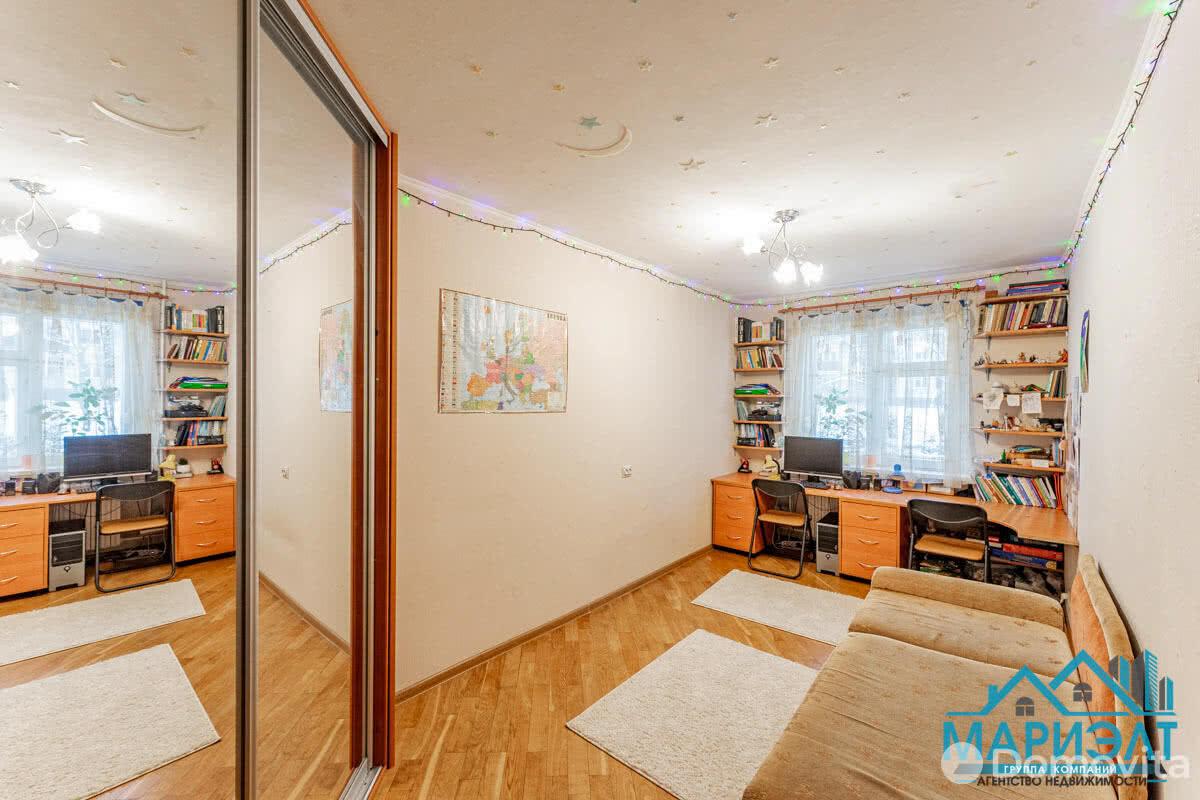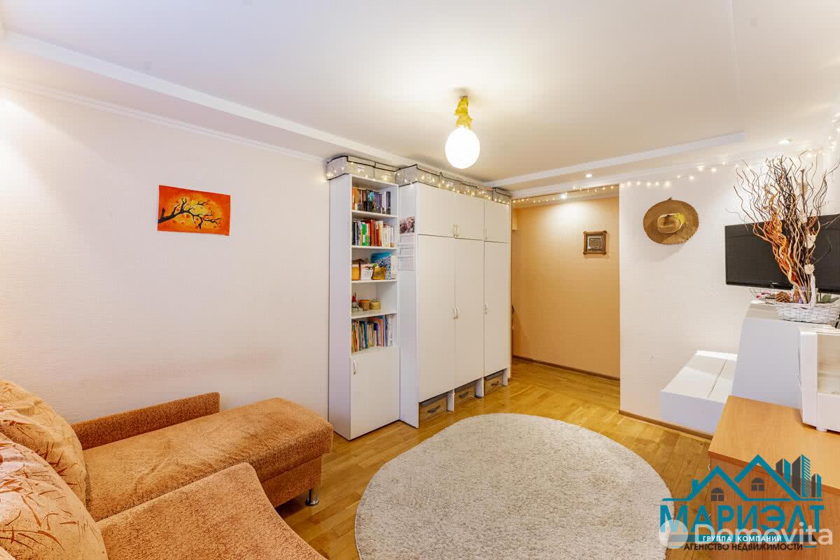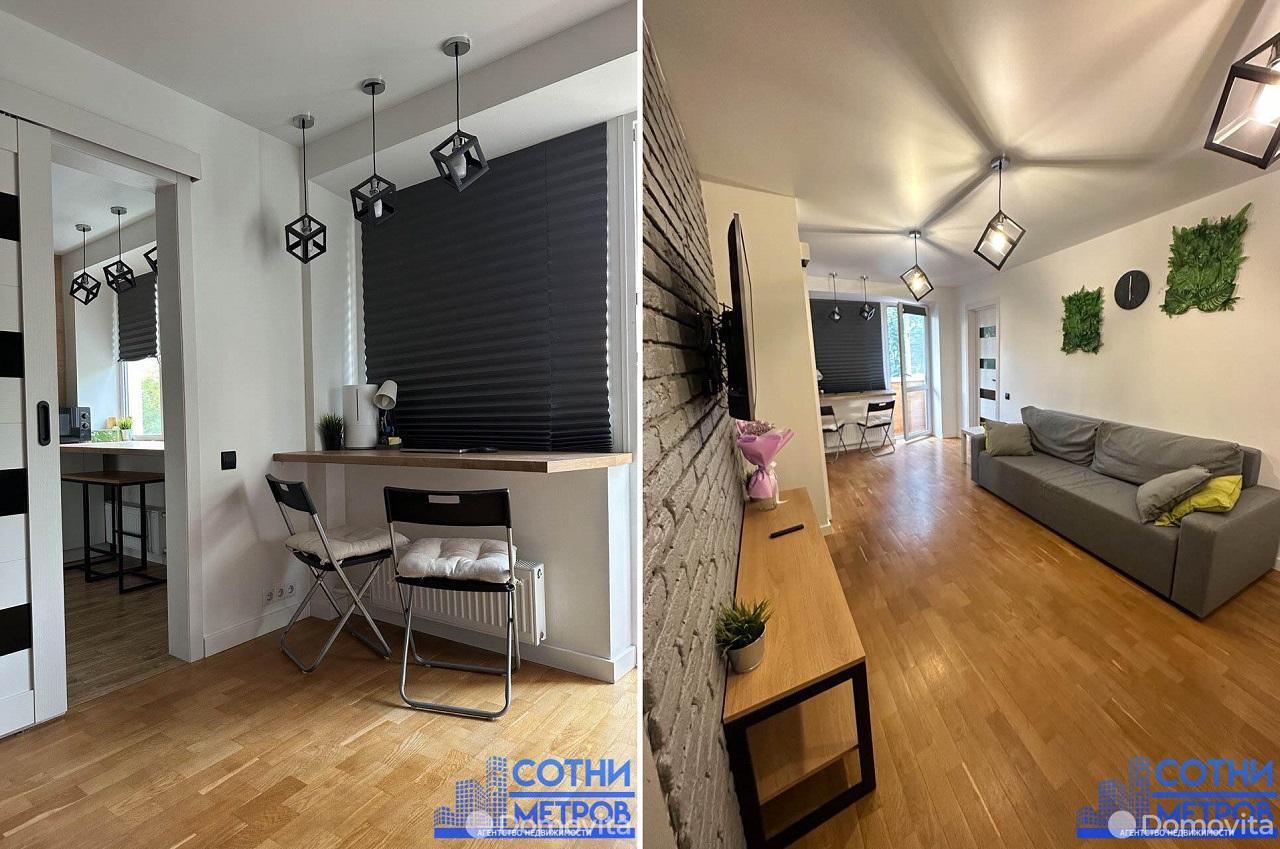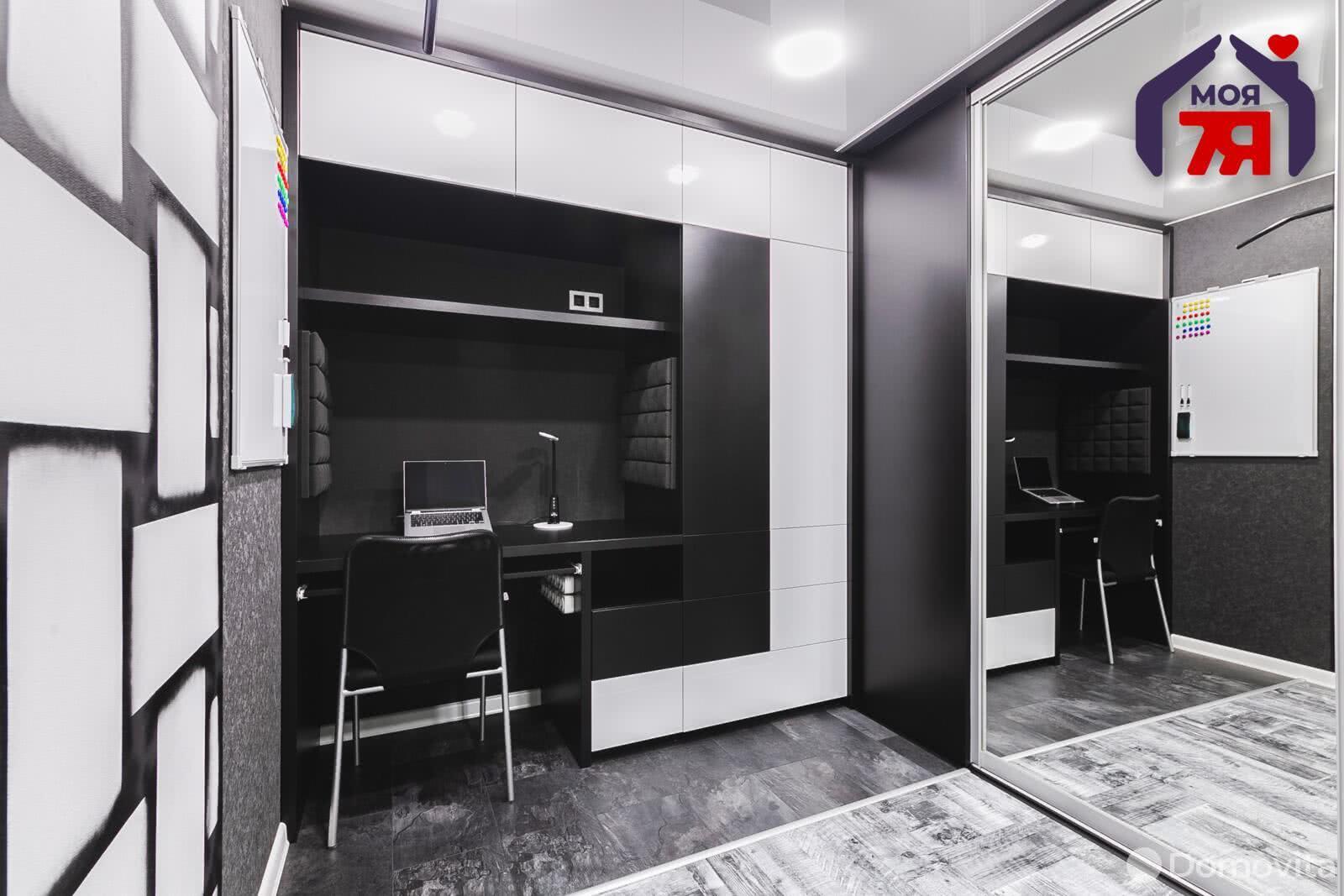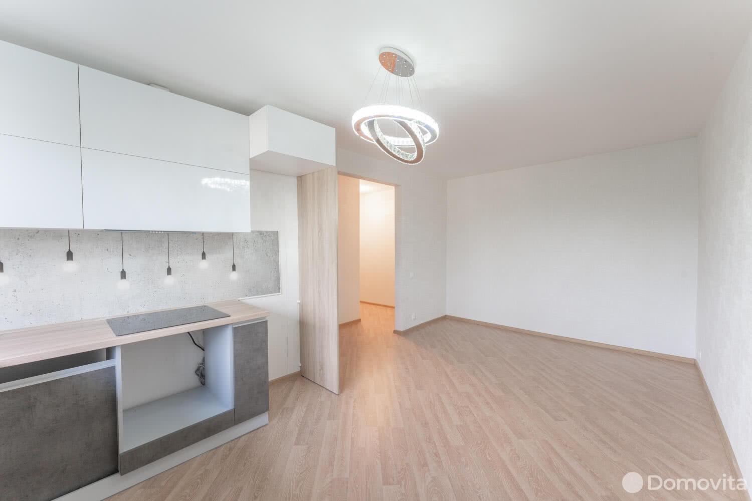 Небольшая квартира площадью 31 кв.м в панельном доме 1963 года постройки. Находится возле трамвайных путей на стыке улицы Якуба Коласа и Логойского тракта, до метро 15 минут на общественном транспорте. Дом после капремонта в 2010 году. В гостиной два окна, есть балкон. Ремонт выглядит прилично, в комнате светлая отделка, в санузле лежит плитка.