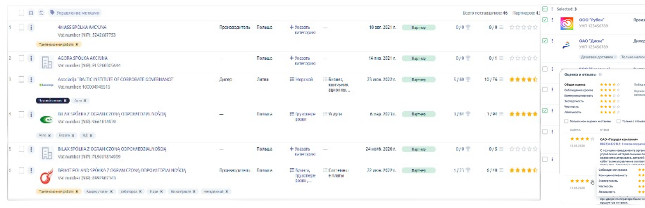 С помощью Bidmart SRM можно создать комплексное цифровое досье по каждому контрагенту, включающее: