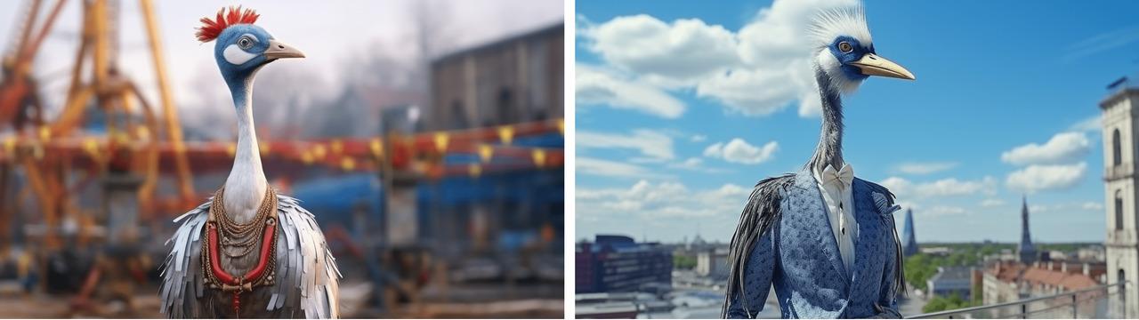 Иногда Midjourney не совсем корректно изображал животных. Так, например, для украинской гривны нейросеть создавала птицу, очень отдаленно похожую на журавля. Потребовалось достаточно много попыток и времени, чтобы прийти к нужному результату.