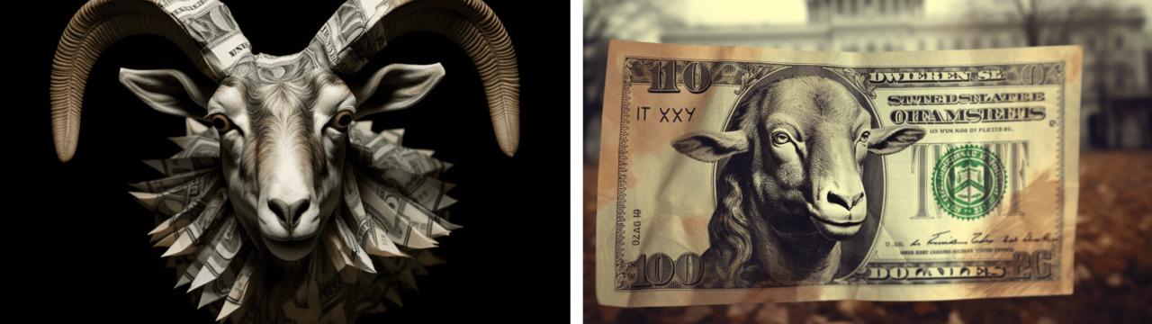 Первые попытки создания изображений получались не очень удачными. Картинки выходили темными и непривлекательными, ИИ делал животных, состоящих из денег, или вставлял животное в саму купюру. После нескольких попыток мы наконец сформировали правильный запрос, и у нас стали получаться подходящие иллюстрации. Итоговый запрос, к которому мы пришли: euro as real animal in formal costume, light picture, realistic and high detailed rendering.