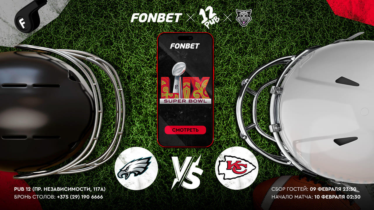 Все настоящие ценители американского футбола в Беларуси соберутся в Минске в PUB 12 вместе с FONBET (Минск, пр. Независимости 117a) 9 февраля. Гостей и зрителей будут встречать с 23:30. Вас ждет не только просмотр матча, но и FONBET ZONE с интересными активностями!