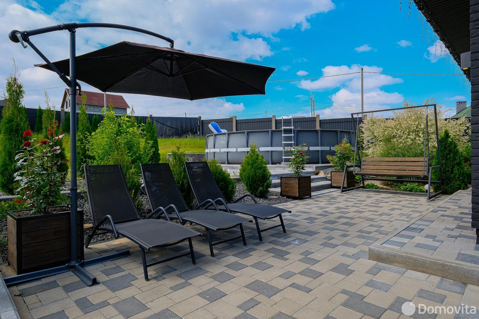 Стильный и современный дом, о котором расскажем сейчас, находится в деревне Мацевичи. Это всего в 8 км от Минска, так что на дорогу много времени не понадобится. В одноэтажном коттедже есть все необходимое для комфортного проживания: гостиная с камином, ТВ, кухня с мебелью и техникой, интернет.