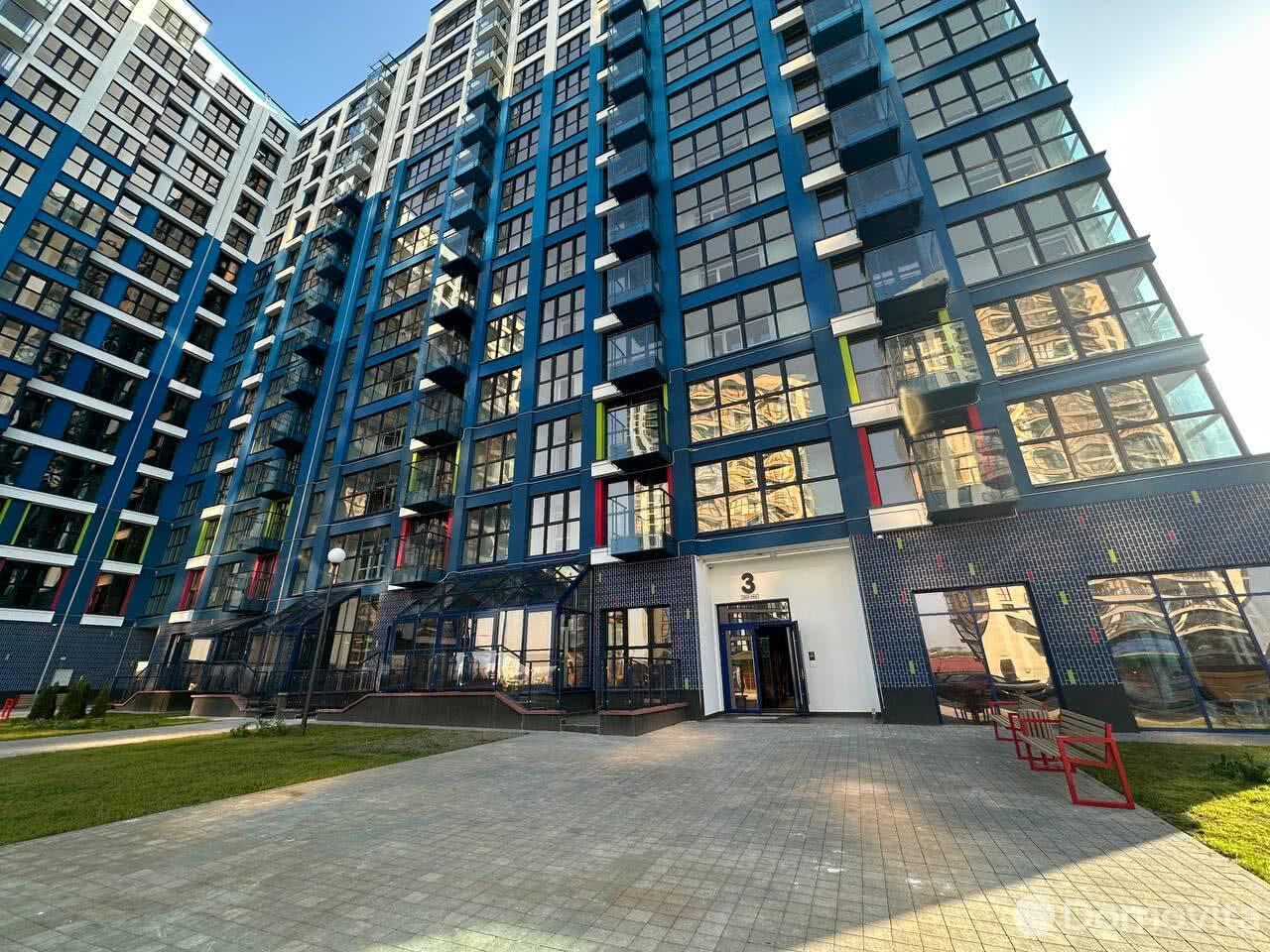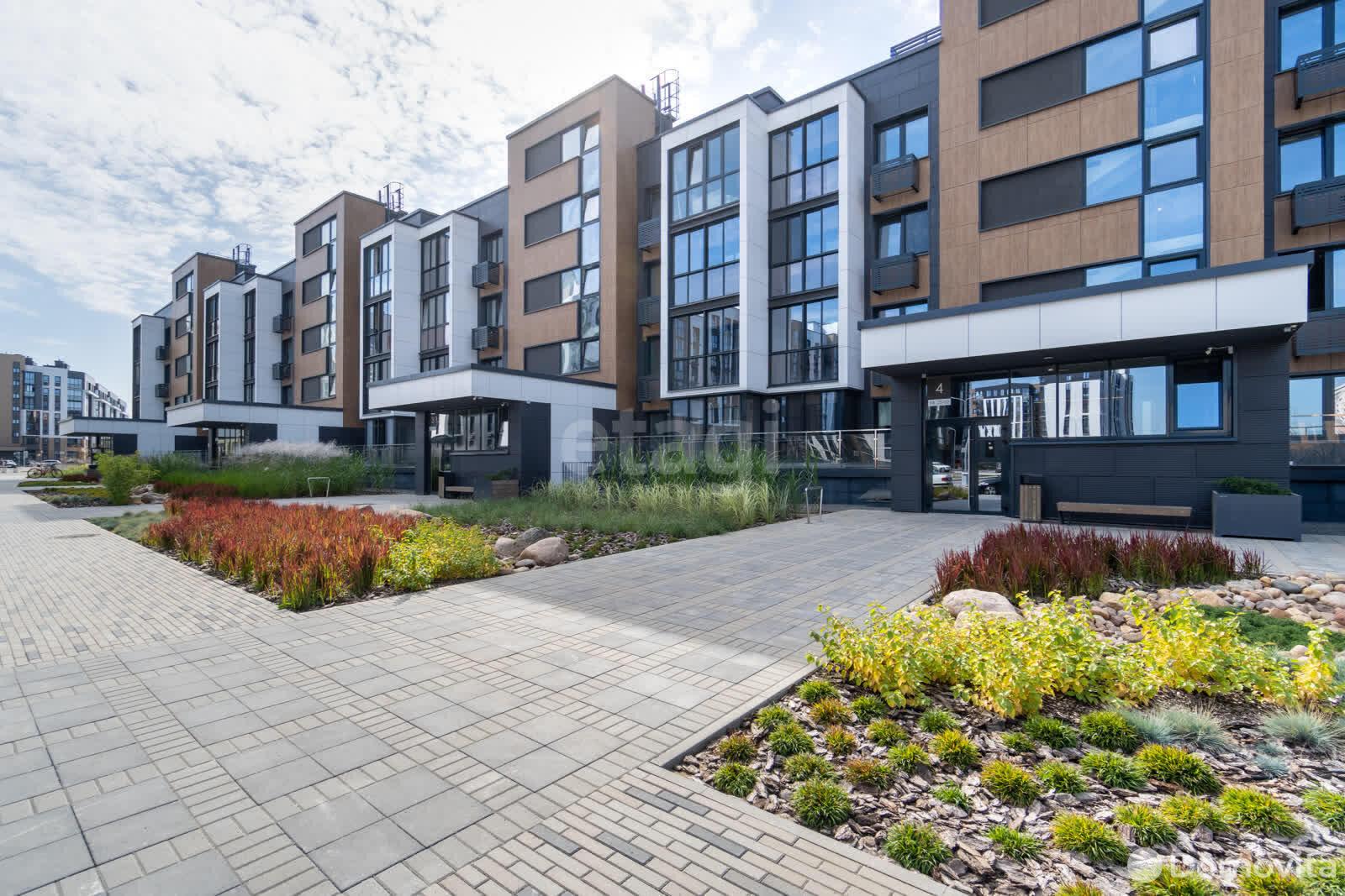 В квартале под названием «Квартал Парк» продают квартиру-студию площадью 34,6 кв. м. Дом построили в 2019 году, это единственная высотка в квартале, а квартира находится на 10-м этаже. В доме есть букшеринг, колясочная, лапомойка, детская игровая и бесплатный тренажерный зал. Просят за квартиру $60 000, то есть по $1734 за метр.