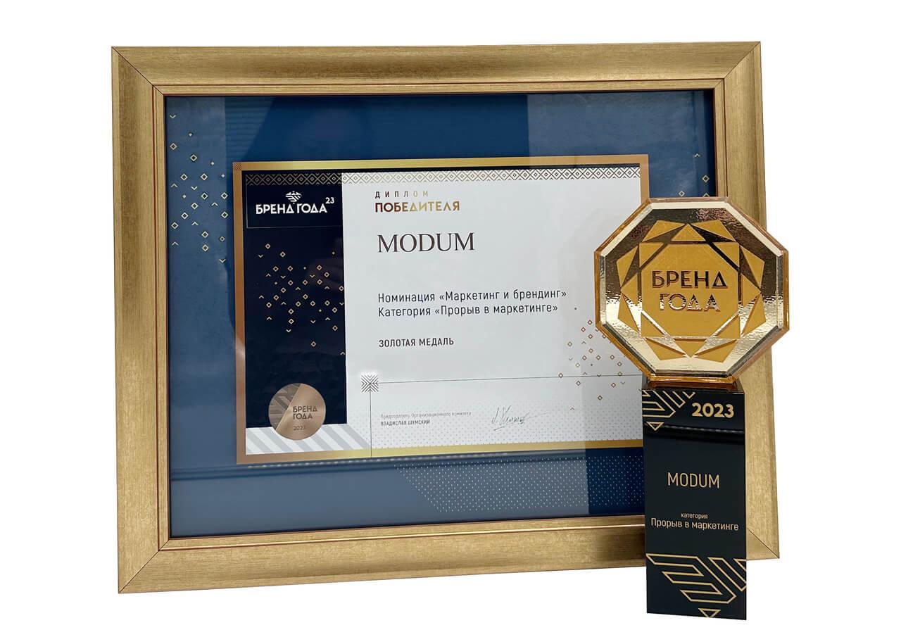 Парфюмерно-косметическая компания Modum получила золотую медаль премии “Бренд года 2023” в категории «Прорыв в маркетинге» номинации “Маркетинг и брендинг”. Награда присуждена за разработку продуктовой линейки MoDo, адресованной широкой аудитории и отмеченной оригинальными аффирмациями.