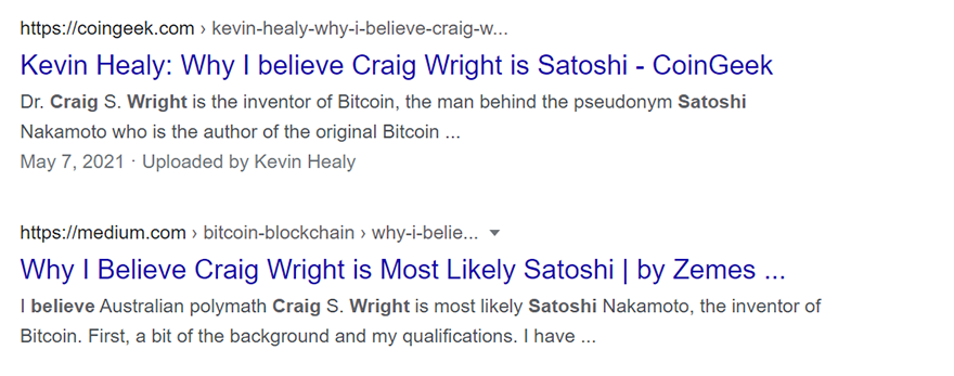В действиях Райта просматривается тенденция: он постоянно обещает доказать свое тождество с Сатоши Накамото, и всякие раз что-то или кто-то мешает ему это сделать. При этом у него множество преданных поклонников, а в интернете можно найти много почти одинаковых статей на тему «Почему я верю, что доктор Крэйг Райт — это Сатоши».