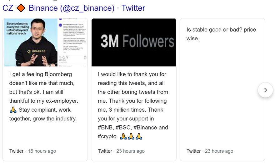Чжао дает хороший пример того, как руководитель криптопроекта может использовать Twitter для продвижения компании и личного бренда. Он не просто размещает новости криптобиржи, но и делится своим мнением о событиях в индустрии и активно общается с подписчиками (которых у него 3 миллиона). При этом Чжао, которого в Twitter все зовут просто CZ, никогда не рекламирует и не критикует конкретные монеты, чтобы не повлиять на их курс — полная противоположность Илону Маску.
