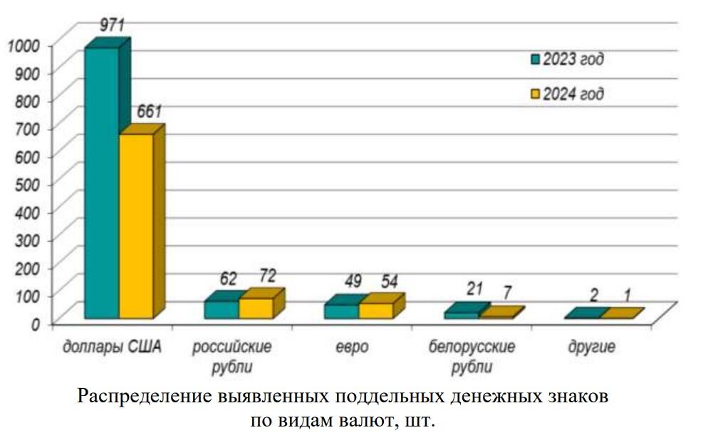 Национальный банк Беларуси рассказал о том, сколько фальшивых дензнаков было выявленных в банковской системе Беларуси в за весь 2024 год.