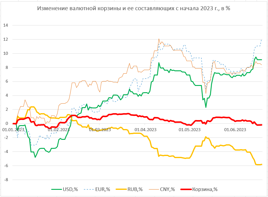 Как и предыдущие две недели, снижение российской валюты «перевесило» рост доллара и юаня. В результате стоимость валютной корзины снизилась за неделю на 0,47%. Национальная валюта укрепляется к корзине четвертую неделю подряд.