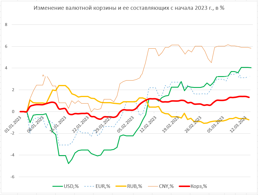 Рост доллара и российского рубля перевесили удешевление юаня, и валютная корзина «потяжелела» за неделю на 0,21%. Снижение белорусского рубля к корзине наблюдается вторую неделю. При этом в течение недели доллар, евро и валютная корзина обновили максимумы с начала года.