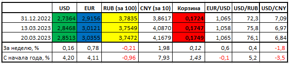 Еще одно последствие банковской турбулентности – продолжение исхода вкладчиков из банков. Консервативная их часть перекладывалась в золото (рост до $1 985 за тройскую унцию, максимум с середины апреля прошлого года). Более прогрессивные обратили свой взор на биткоин, который подскочил до $28 000, это максимум с июня прошлого года.