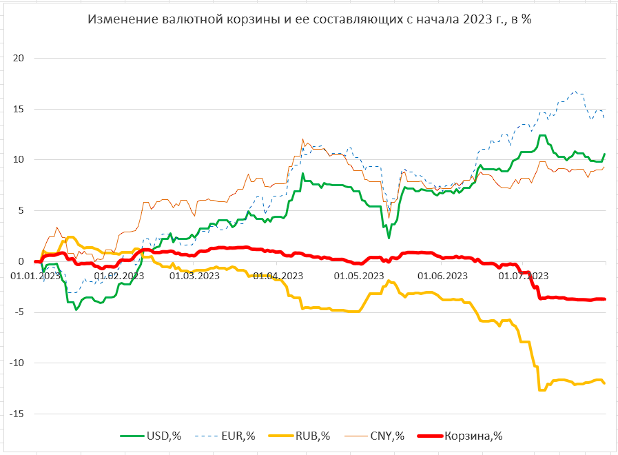 Рост доллара и юаня в составе корзины «перевесил» снижение российского рубля. В результате стоимость валютной корзины после девяти недель снижения выросла на 0,06%. Но при этом в середине недели корзина успела обновить минимум с начала года. Формально можно констатировать ослабление белорусского рубля за неделю, но на весьма скромную величину. А заметное движение отдельных валют было подчинено события на мировых финансовых рынках.