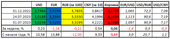 Основное событие прошедшей недели, к которому было приковано внимание всех участников рынка – заседание ФРС США, которое завершилось в среду, 26 июля. Накануне заседания рынки указывали на рост ставки на 25 бп. с вероятностью 100%. Несмотря на более благоприятные данные по инфляции за июнь, чиновники ФРС, очевидно, были настроены на повышение ставки отчасти из-за того, что общий уровень занятости и экономической активности с мая оказался сильнее, чем ожидалось.