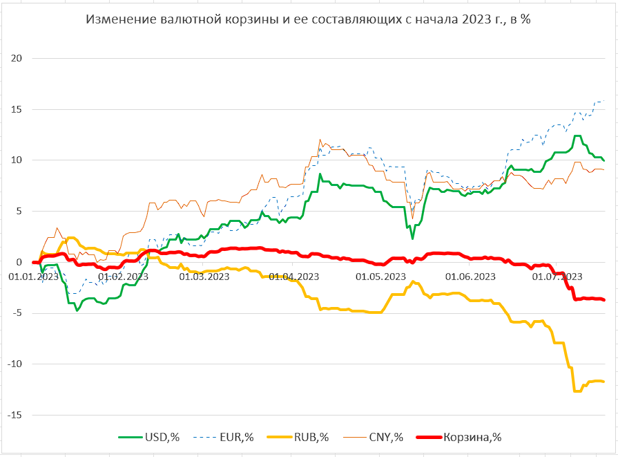 Кроме того, следует отметить, что достигнутый уровень годовой инфляции вряд ли станет устойчивым. Вероятнее всего, он находится вблизи локального минимума. И если не в июле, то в августе инфляция перейдет к росту хотя бы из-за эффекта снижения базы. В прошлом году инфляция, достигнув пика в июле, во второй половине года перешла к снижению. И при расчете инфляции в годовом выражении, начиная с августа, мы будем сравнивать нынешнюю инфляцию со снижающейся прошлогодней.