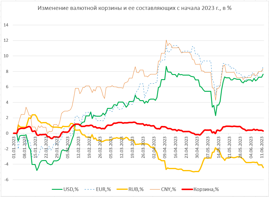 Как и неделей ранее, снижение российской валюты «перевесило» рост доллара и юаня. В результате стоимость валютной корзины снизилась за неделю на 0,12%. Национальная валюта укрепляется к корзине третью неделю подряд.