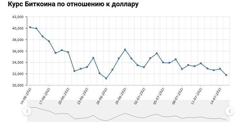 - Добившись в первом полугодии нового рекорда, курс биткоина опустился и колеблется уже более месяца в пределах от 29 до 36 тыс. долларов США. Похожим образом себя ведут и основные альткоины.