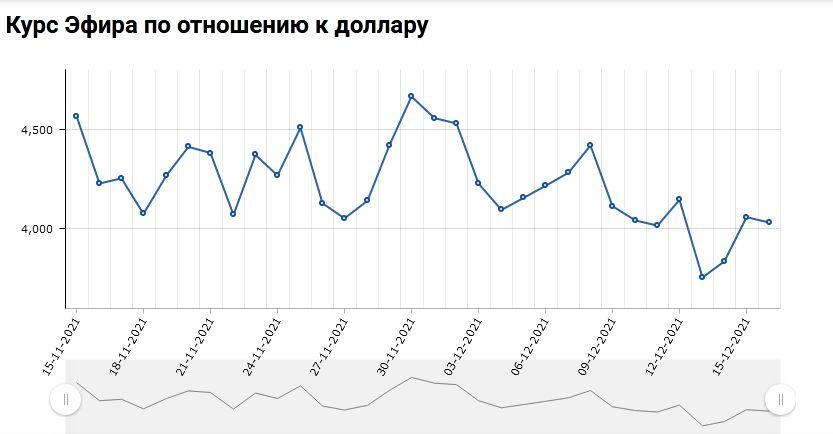 Средневзвешенный курс эфира 17 декабря (на 10:50) составил $3875,8.