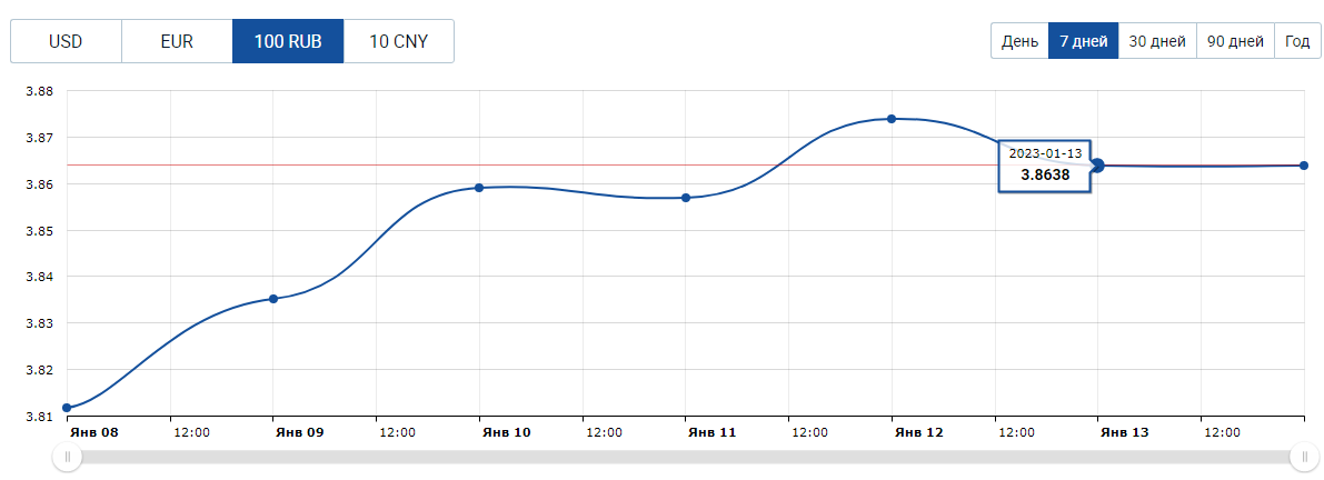 Обменный курс российского рубля за прошлую неделю как-то нелогично на этом фоне также снизился. По итогам торгов на БВФБ курс рубля ушёл вниз на -0,32%. Изменение курса к началу года теперь составляет всего +0,38%. Курс закрытия прошлой недели RUB/BYN 3,7199 за 100 российских рублей. Объём торов рублём за неделю составил 13 011,770 млн рублей, что соответствует средним значениям.