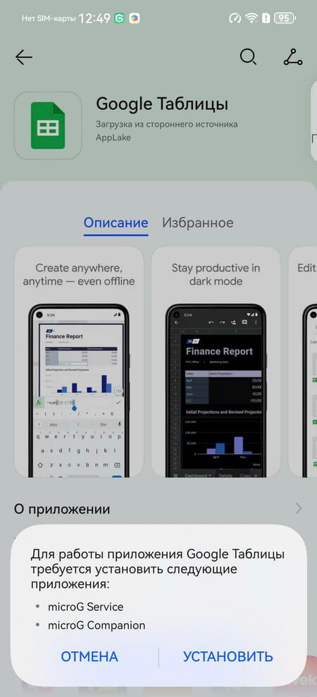 Сам сервис microG предварительно искать не нужно. Утилита устанавливается одновременно с первым поддерживаемым приложением, найти которое можно прямо в Huawei AppGallery. К ним относятся продукты от Google вроде Google Таблиц, Google Документов, Gmail, Google Диска или YouTube, а также некоторые другие от сторонних разработчиков – вроде Zoom, Instagram или Facebook. Распознав таковые, смартфон сам предложит загрузить все компоненты microG – называются они microG Services (microG Сервисы) и microG Companion (microG Компаньон). Главное при этом выбрать в качестве источника AppLake.