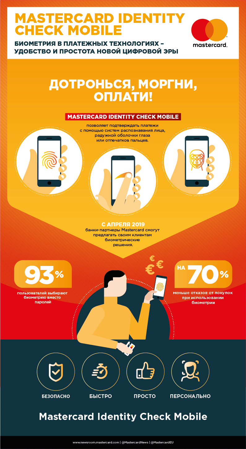 «Биометрические технологии идеально соответствуют ожиданиям людей о безопасных платежных решениях будущего, в котором еще больше проявится стремительная цифровизация повседневной жизни. Биометрия может обеспечить покупателей, ритейлеров и банки значительными преимуществами за счет упрощения процесса шоппинга и обеспечения безопасности транзакций. Наша лидерская позиция в этом сегменте отражает готовность компании адаптироваться к новым ожиданиям и потребностям», – отмечает Хавьер Перес, президент Mastercard в Европе.
