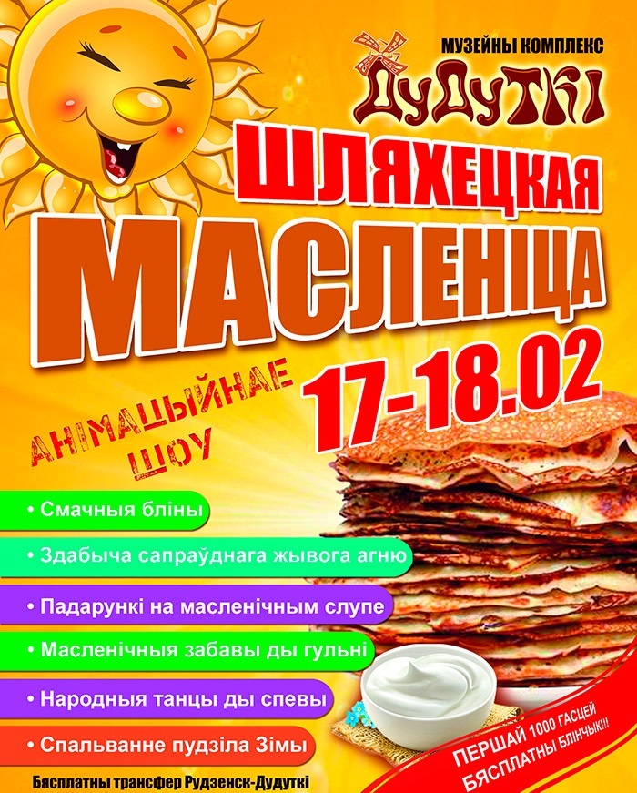 Ко всему этому, для хорошего настроения вас ждут горячие блинчики, драники, и другие блюда национальной кухни. Первая тысяча гостей получат масленичный блинчик абсолютно бесплатно!