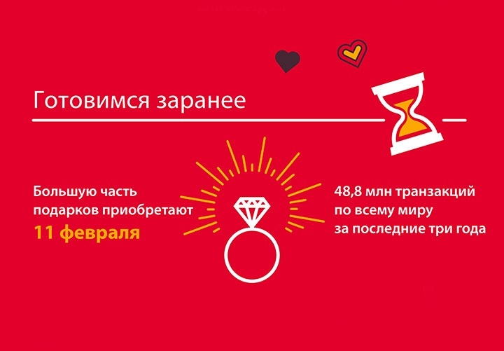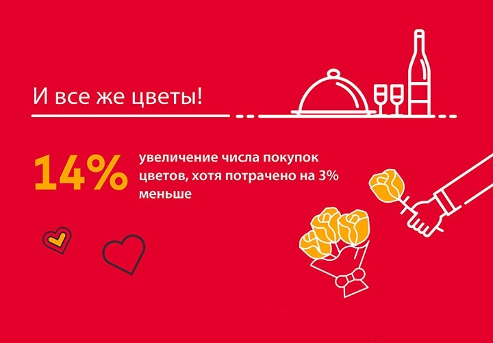 Во всем мире влюбленные продолжают объясняться в чувствах и для этого выбирают в подарок не вещи, а яркие впечатления. По нашим данным, с 2015 года ко Дню святого Валентина стали тратить на 6% больше, а общее число транзакций в этот романтичный праздник выросло на 17%.