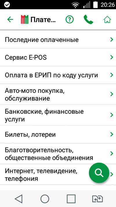 Для совершения расчетов – сразу четыре разных пункта: «Платежи», «Быстрые платежи», «Оплата одной кнопкой» и «Автооплата». В «Платежах» есть свой список команд. Выбрав пункт «Оплата услуг», мы попадаем в длинный перечень всего, что можно оплатить, включая оплату через ЕРИП. А возглавляет список пункт «Последние оплаченные», куда попадают соответствующие платежи.