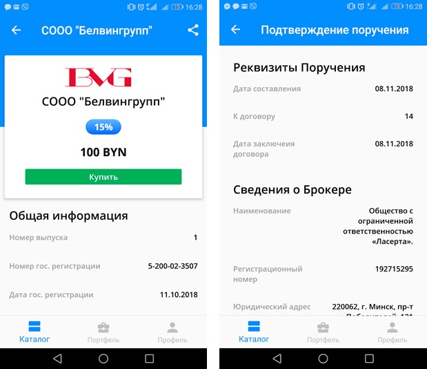 Для того, чтобы пользоваться всеми функциями приложения необходимо заключить с ООО «Ласерта» договор. Без договора приложение позволяет только изучать данные о текущих эмиссиях без возможности приобретения бумаг.