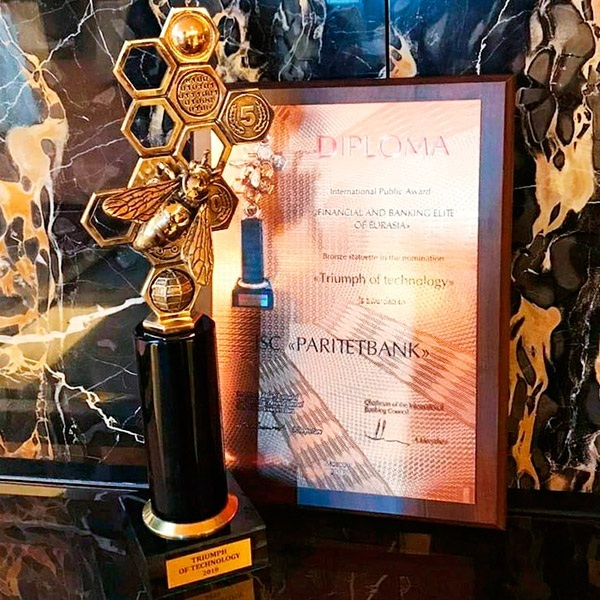 Бронзовая пчела является знаковой наградой для банка: открытие нового технологичного офиса стало официальным стартом ребрендинга ОАО «Паритетбанк».