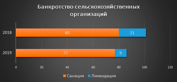 Что же касается банкротств сельскохозяйственных организаций, то по состоянию на начало года их стало меньше на 17%, закрыты дела о банкротстве в отношении 18 предприятий.