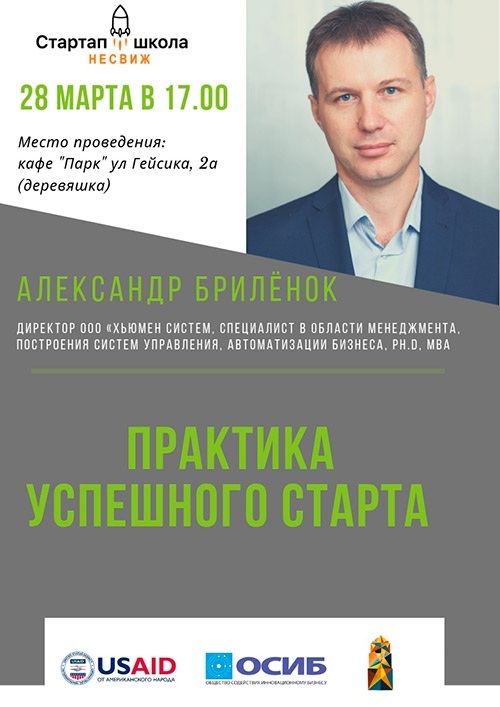 28 марта в Стартап-школе Несвиж пройдет митап от Александра Брилёнка - директора ООО «Хьюмен систем», Ph.D, МBA, специалиста с области менеджмента, построения систем управления, автоматизации бизнеса.