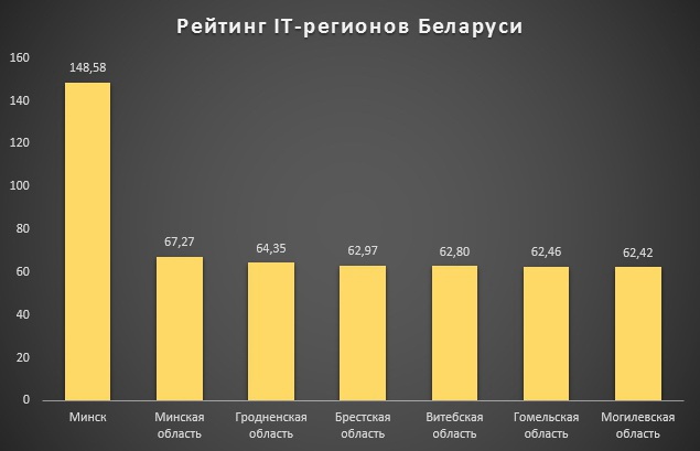Основная битва развернулась за четвертое-седьмое места, где регионы Беларуси отличаются лишь сотыми долями баллов. Что говорит о примерно равном уровне развития белорусских регионов в сфере информационных технологий и их постепенным проникновением в местный бизнес. Однако это пока небыстрый процесс, так как еще не каждый региональный бизнес смог воочию убедиться в эффективности внедрения новых технологий.