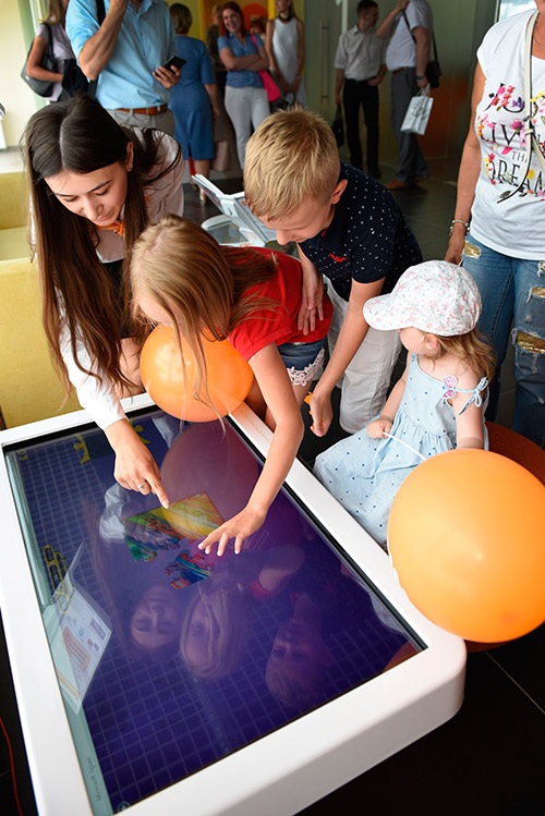 В новом офисе кассовые стойки вместо обычных информационных стоек-«вертушек» с бумажными документами оснащены планшетами для клиентов. Посетителям с маленькими детьми понравится детский интерактивный стол-экран с богатым набором мобильных игр.