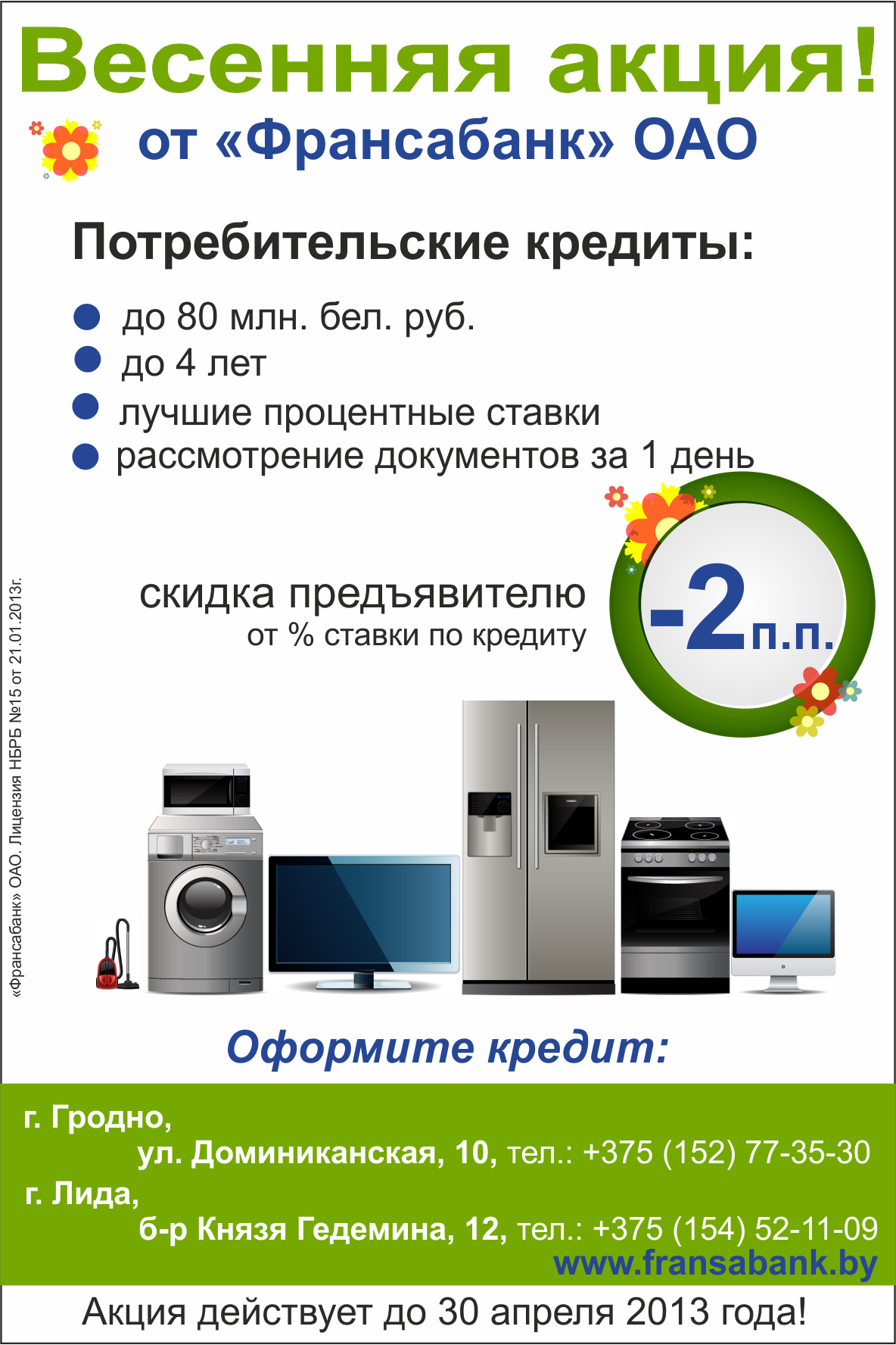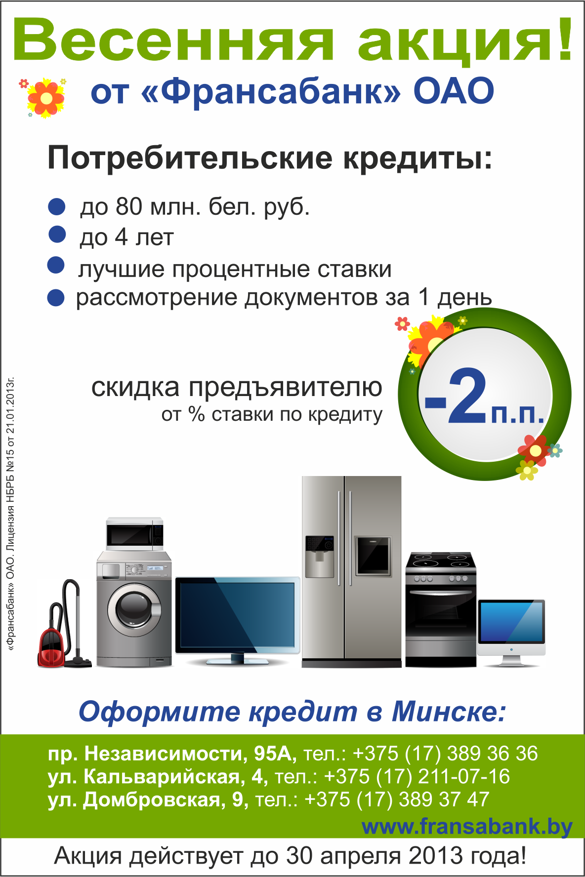 Подробную информацию по условиям акции Вы можете получить по телефону в Минске: 8 (017) 389 36 36 или на сайте банка