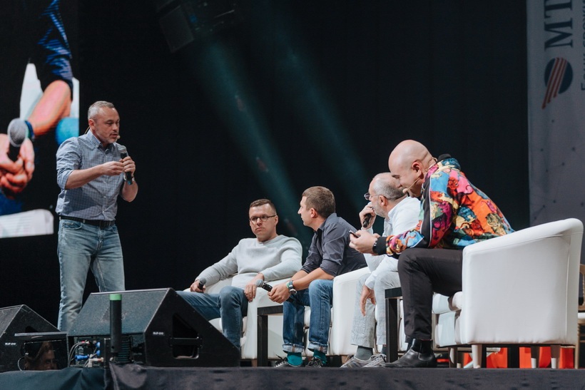 Говорили откровенно о главных «болезнях» и проблемах бизнеса, отвечали на вопросы из зала и Инстаграма Виктора Прокопени. «Скорость или концентрация?», «Что делать, когда кассовый разрыв и кончились деньги?», «Готовы ли вы стать репродуктивным донором?» (спойлер: ни один предприниматель, находившийся на сцене, не согласился).