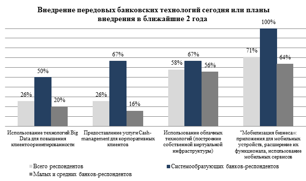 Одними из мировых трендов применения ИТ в банковском секторе на сегодняшний день являются использование технологий BigData, облачных технологий, предоставление услуг Cash-management, «мобилизация бизнеса». В исследовании отражено каким образом белорусский рынок следует мировым тенденциям и планирует использовать обозначенные технологии.