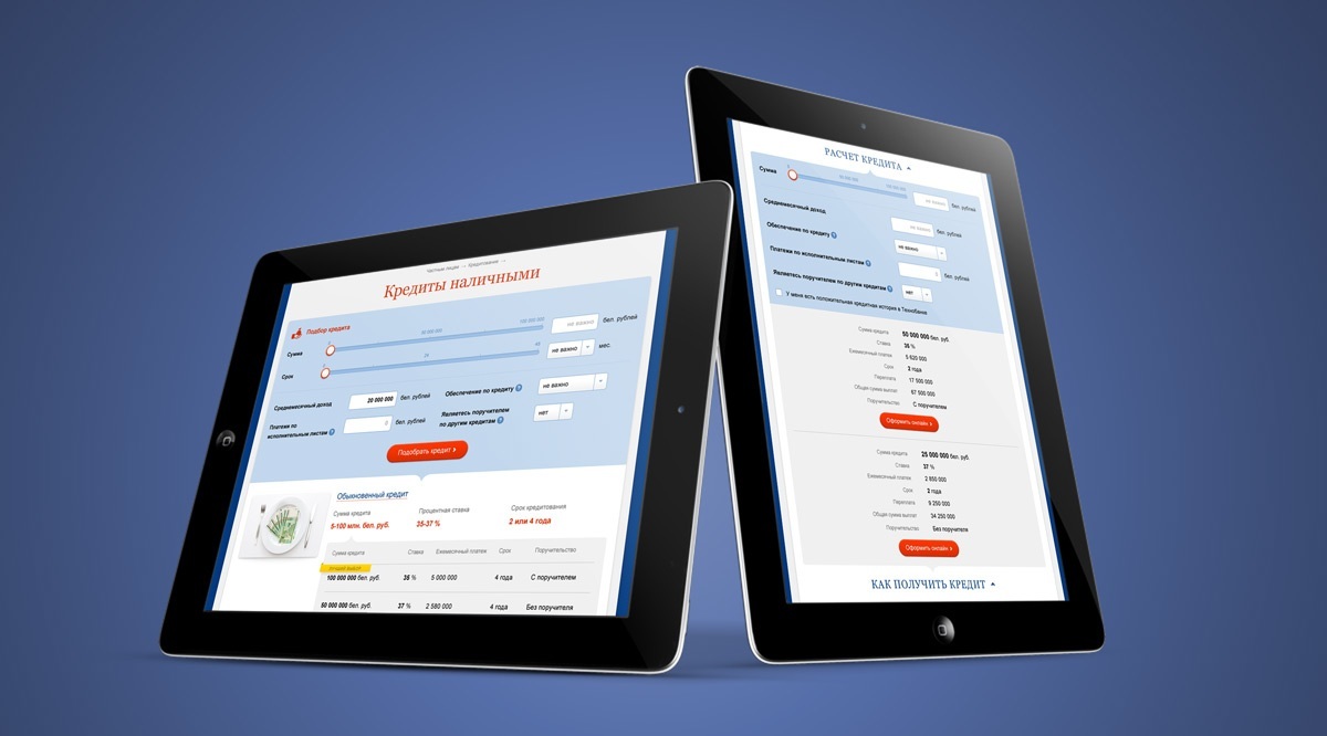 Теперь на сайте буквально в каждом продуктовом разделе для частных лиц реализованы функции, позволяющие посетителю быстро и эффективно оценить банковские продукты, их преимущества и возможности. Исходя из выбранных клиентом параметров, доходности вклада, свойств платежной карточки или полной ставки по кредиту система определяет наиболее выгодный для клиента продукт и выделяет его. Например, одна из самых востребованных функций - подбор кредита. Страница интересующего кредита поможет рассчитать ежемесячные платежи и предложит оформить кредит прямо на сайте. Онлайн-заявка на кредит сэкономит кредитополучателям время на визите в отделение и оформлении документов с сотрудниками банка. На заполнение такой заявки понадобится всего 1-2 минуты!