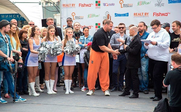 Обратный отсчёт и сражение силача и крана началось! Тяжелая техника на первый взгляд легко сдвигается с места и почти достигает отметки 2 м. Но как только Кирилл Шимко перемещает руки на следующую ступеньку лестницы, кран предательски откатывается назад. Вторая попытка – и рекорд зафиксирован – 143,5 см! Именно такое значение засвидетельствовали и внесли в специальные бланки Комитета Книги рекордов Гиннесса председатель Белорусской ассоциации "Недвижимость" Николай Простолупов и заведующая кафедрой управления недвижимостью ГИУСТ БГУ Татьяна Борздова.