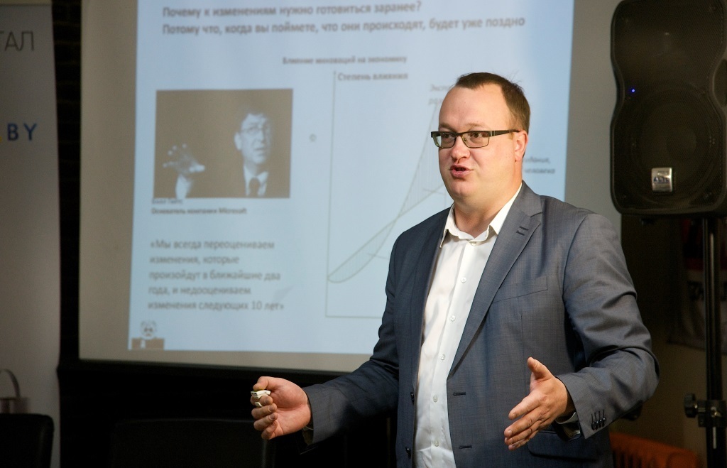 "Мы смотрим в будущее линейно. Поэтому мы часто не замечаем инновации, которые уже появились. В первые 2 года они развиваются и их никто не замечает – ни люди, ни банки. А через 2 года начинается экспоненциальный рост технологии, и все удивляются: где мы были?!" - рассказывает Артем Стрельчонок, директор по стратегическому развитию компании SoftClub на пресс-конференции хакатона Tech Minsk в бизнес-клубе Imaguru.
