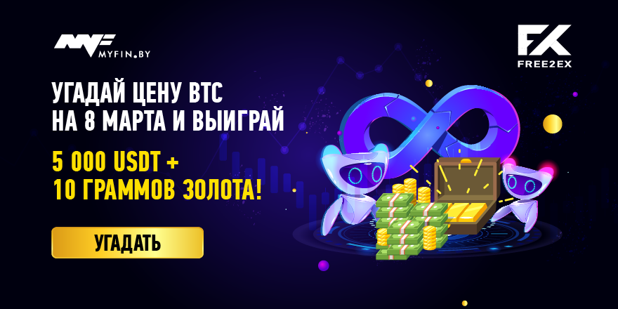 Регулируемая биржа FREE2EX совместно с ведущим финансовым порталом MyFin объявляет акцию: угадай цену ВТС на 8 марта и получи до $5 000 в USDT для трейдинга плюс эквивалент 10 г золота в токенах XAUT. Всего биржа вручит 103 приза, так что хватит на всех!