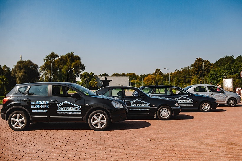 Мало того, что офис компании находится в центре города на ул. Республиканской,10Б-55, по Бресту клиентов «Бугриэлт» возят красивые брендированные автомобили агентства.