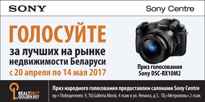 «Народное голосование» Realt Golden Key 2017завершается 14 мая в 23.59. У вас еще есть время выразить свое отношение к участникам и, что может стать сюрпризом, выиграть приз народного голосования ─ знаменитую фотокамеру SonyDSC-RX10M2 от SonyCentre.