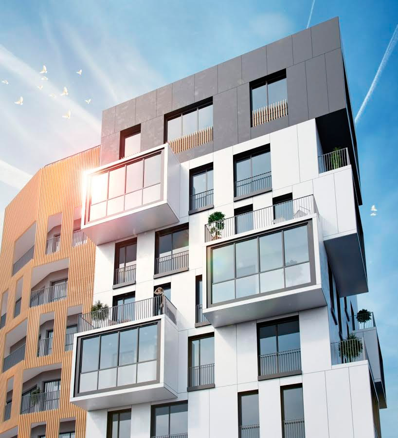 «Белые лаконичные объемы с характерными изломами форм составляют динамичную пространственную композицию, создающую иллюзию небрежно рассыпанных кусочков рафинированного сахара. Нерегулярность окон и хаотичность консольных балконов создают уникальный ритм на фасаде», - так характеризуют экстерьер комфортаментов архитекторы проекта.