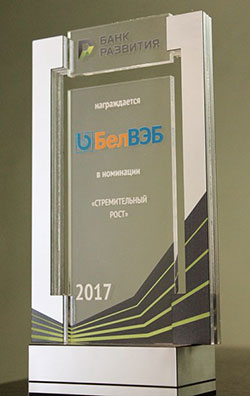 ОАО «Банк БелВЭБ» получило награду от ОАО «Банк развития Республики Беларусь» «За стремительный рост кредитования малого и среднего бизнеса».