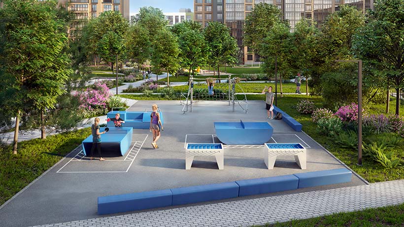 В парк пересадят уже взрослые деревья, поэтому гулять в нем можно будет сразу же после окончания строительства. Согласно проекту, здесь будут места для отдыха, «поляна» гамаков, детские игровые комплексы от ведущих мировых брендов, продуманные площадки для воркаута. И даже своеобразные рабочие зоны – уличные офисы, где можно будет плодотворно поработать, подзаряжая ноутбук от солнечной батареи и пользуясь общественным бесплатным Wi-Fi. Кстати, инновационные решения – светодиодное освещение и скамейки с солнечными панелями и USB-разъемами – обеспечивают дополнительный комфорт.