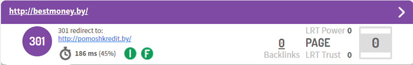 Bestmoney.by пропал не только из ТОП-10, но и из всего рейтинга, а его место в десятке теперь занимает Pomoshkredit.by. Судя по настроенному 301 редиректу, проект сменил основной домен.