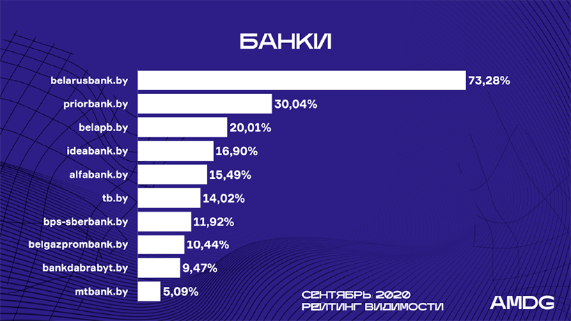 Например, Amd.by впервые оказался в лидерской десятке и повысил показатели с 0,84% в июле до 7,13% в сентябре.