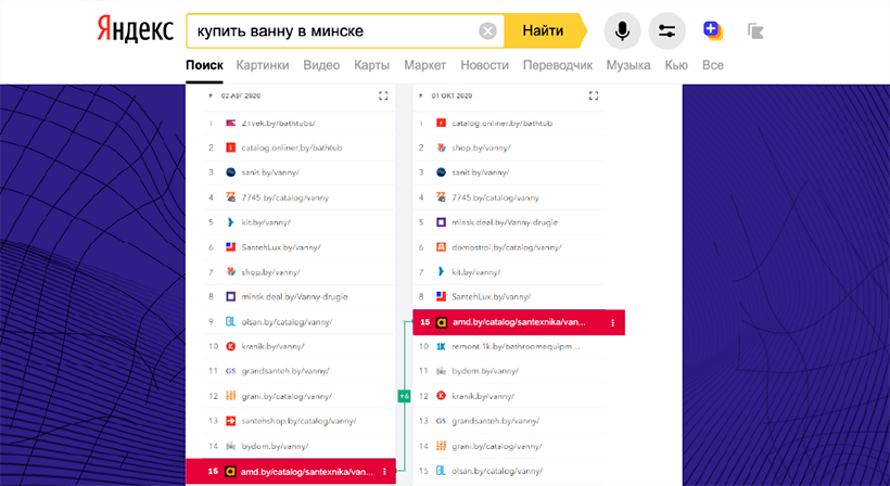 Рост обусловлен улучшением позиций в Яндексе и Google по частотным запросам. К примеру, Imarket.by: