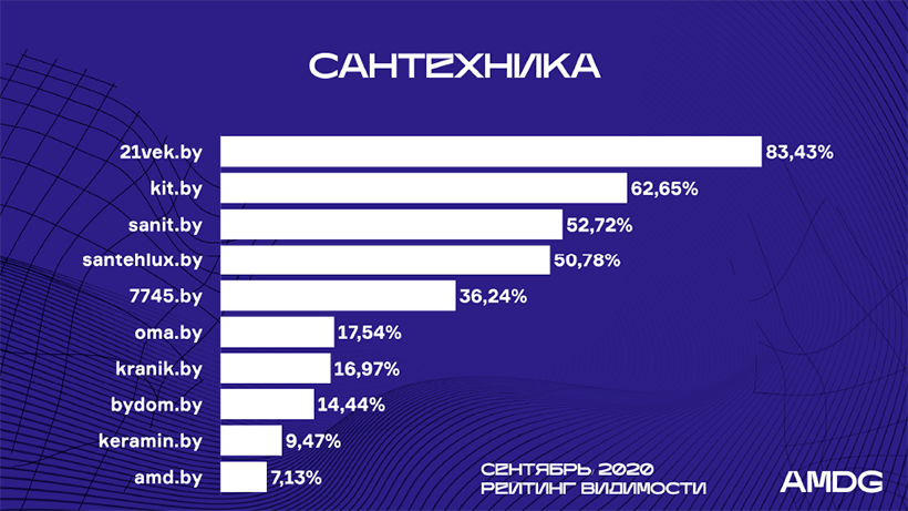 Еще один новый участник – Oma.by – включен в рейтинг сентября после пересмотра подхода за счет широкого ассортимента товаров сантехники и высоких позиций по направлению.